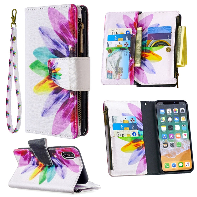 Funda de Cuero para iPhone Xs X con Tapa Horizontal Soporte Ranuras y Cremallera (Sun Flower)
