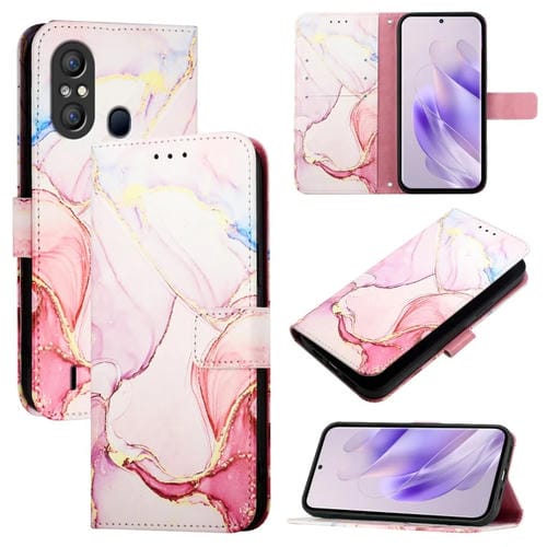 Funda para Teléfono Itel A58 / A49 Pt003 de Cuero con Tapa y Patrón Mármol (Oro Rosa)