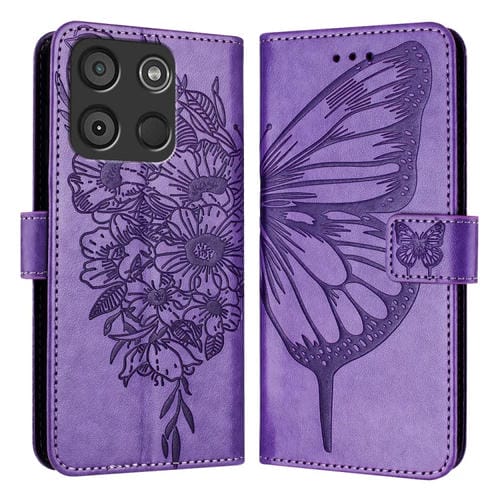 Funda de Cuero para Itel A60 / A60S con Mariposa en Relieve (Púrpura Claro)