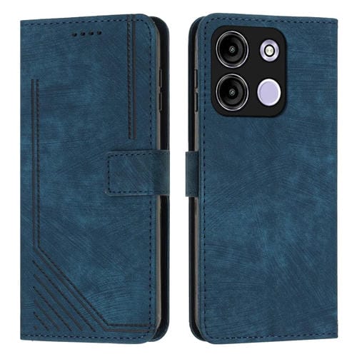 Funda de Cuero para Itel A60S con Patrón de Rayas y Cordón (Azul)