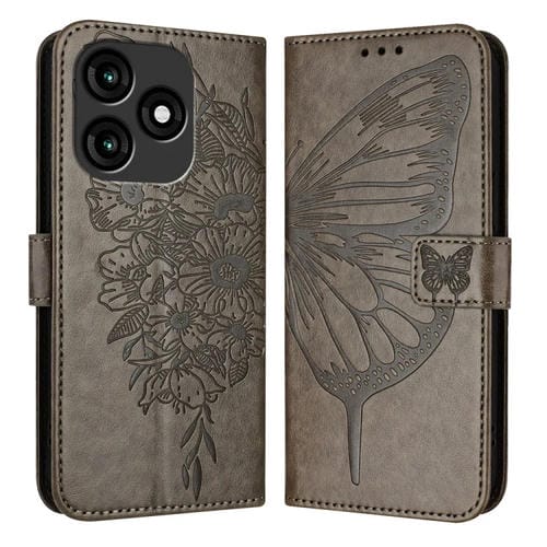 Funda de Cuero para Itel A70 con Mariposa en Relieve (Gris)
