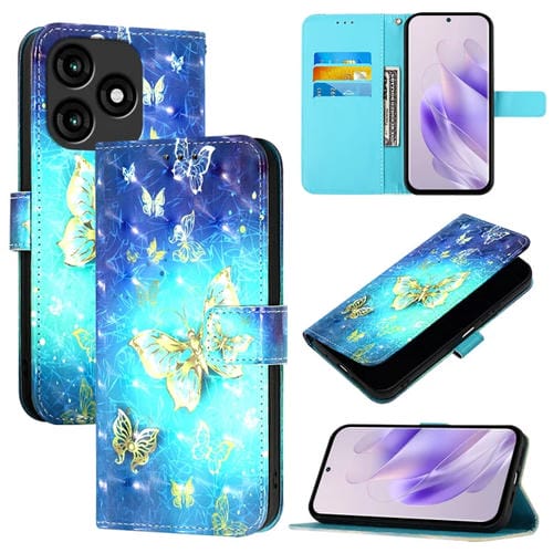 Funda para Teléfono Itel A70 de Cuero con Tapa Horizontal y Pintura 3D (Mariposa Dorada)