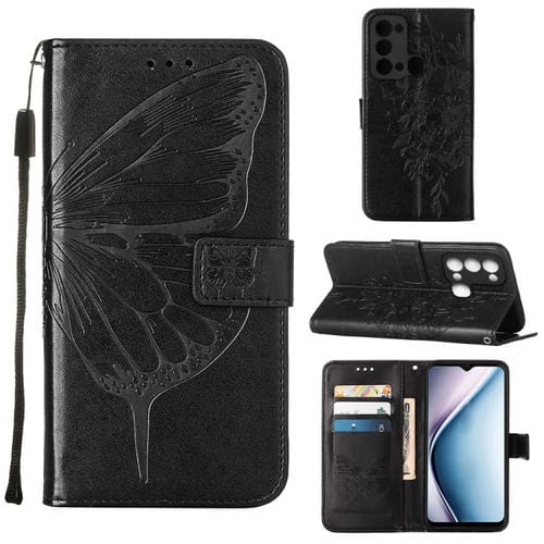 Estuche para Itel P38 S17 S1661W Vision 3 de Cuero con Tapa de Mariposa en Relieve (Negro)