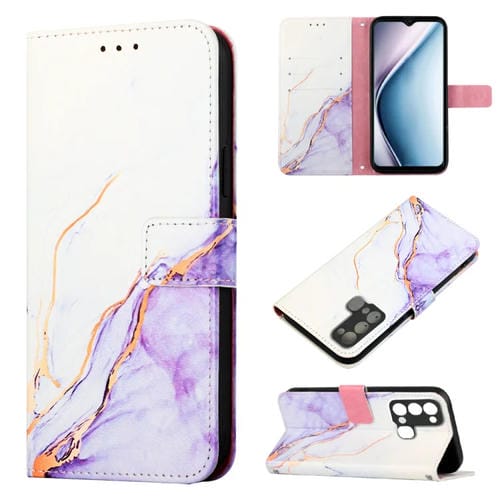Estuche de Cuero para Itel P38 / S17 / Vision3 Pt003 con Tapa y Patrón de Mármol (Blanco Púrpura)