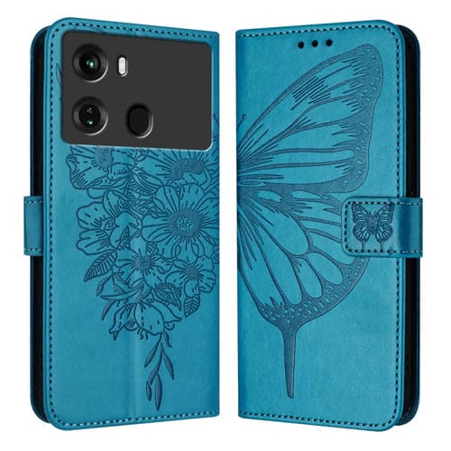 Funda de Cuero para Itel P40 con Mariposa en Relieve (Azul)
