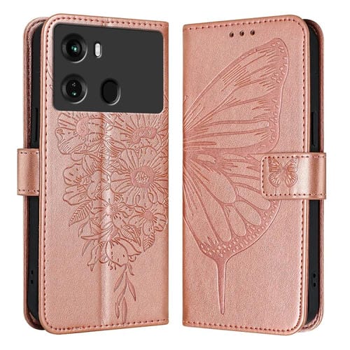 Funda de Cuero para Itel P40 con Mariposa en Relieve (Oro Rosa)