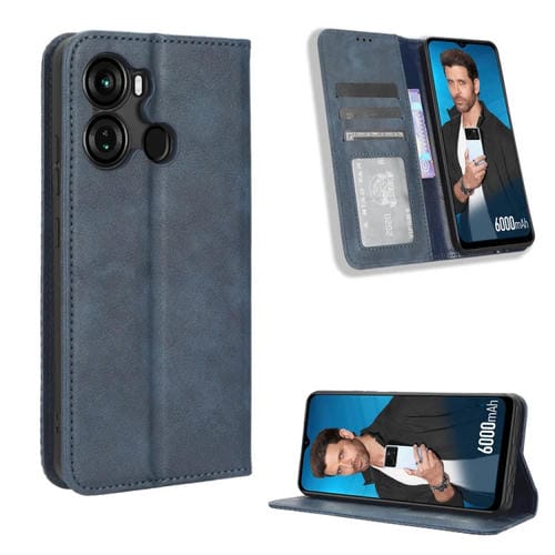 Funda de Cuero para Itel P40 con Hebilla Magnética y Textura Retro (Azul)