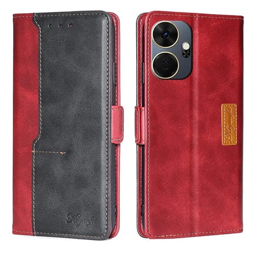 Funda de Cuero para Itel P55 + 4G con Hebilla Lateral y Color En Contraste (Rojo + Negro)