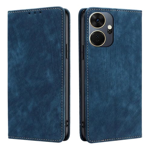 Funda de Cuero Magnética para Itel P55 + 4G con Rfid y Cepillo Antirrobo (Azul)