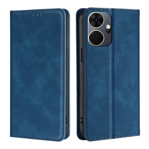 Funda de Cuero Magnética para Itel P55 + 4G Skin Feel (Azul)