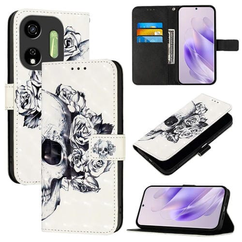 Funda de Cuero con Tapa Horizontal para Itel P55 5G con Pintura 3D (Calavera)