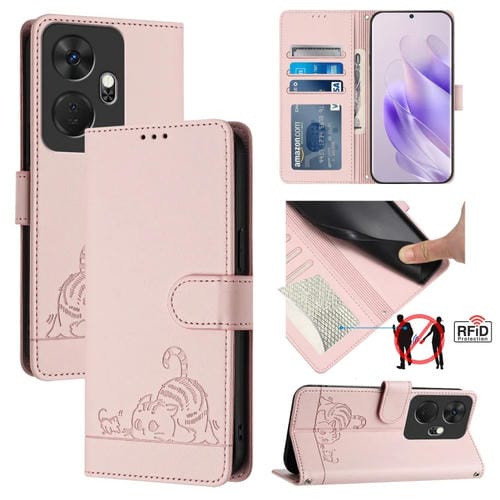 Estuche para Itel P55 + Cat Rat de Cuero Rfid con Patrón en Relieve y Cordón (Rosa)
