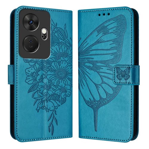 Funda de Cuero para Itel P55 con Mariposa en Relieve (Azul)