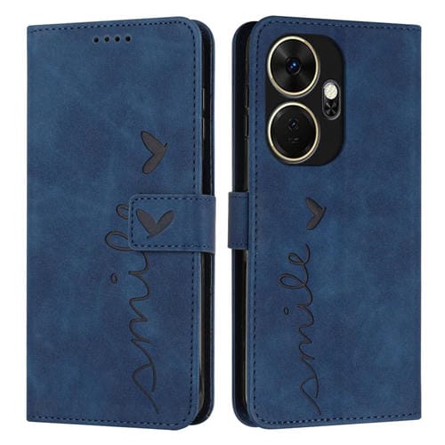 Funda para Itel P55 Skin Feel Heart de Cuero en Relieve con Cordón Largo (Azul)