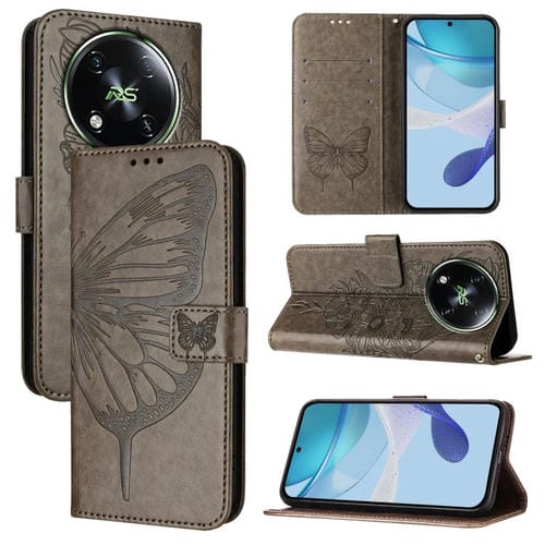 Funda para Teléfono Itel Rs4 S666Ln Cuero con Mariposa en Relieve (Gris)