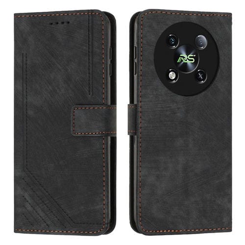 Funda de Cuero para Itel Rs4 con Patrón de Rayas y Cordón (Negro)