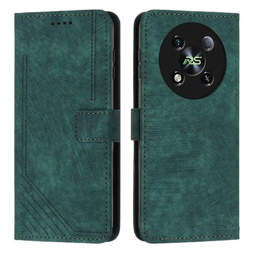 Funda de Cuero para Itel Rs4 con Patrón de Rayas y Cordón (Verde)