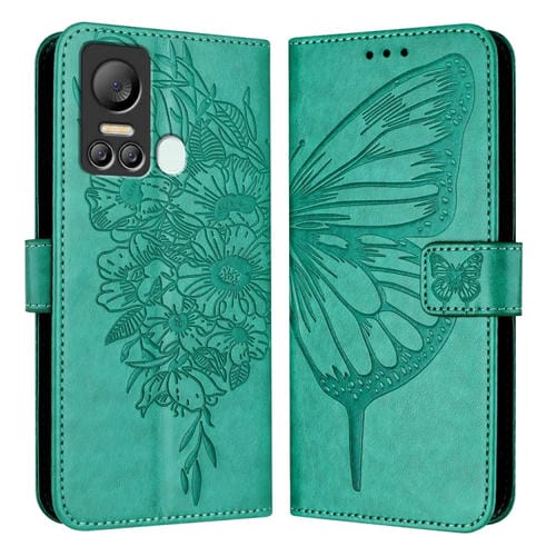 Funda de Cuero para Itel S18 y Vision 5 con Mariposa en Relieve (Verde)