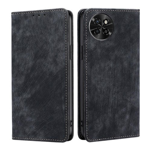Funda de Cuero Magnética para Itel S23 4G con Rfid y Cepillo Antirrobo (Negro)