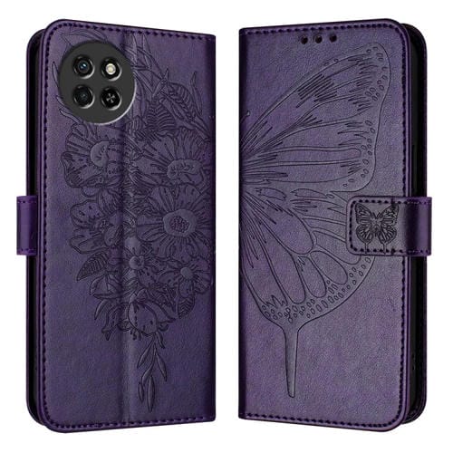 Funda de Cuero para Itel S23 con Mariposa en Relieve (Púrpura Oscuro)