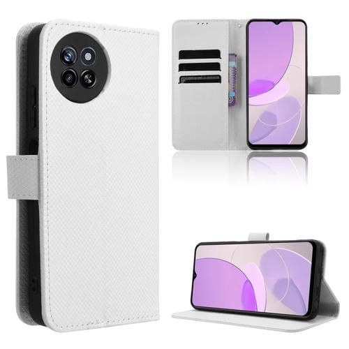 Funda de Cuero para Itel S23 S665L con Textura de Diamante (Blanco)