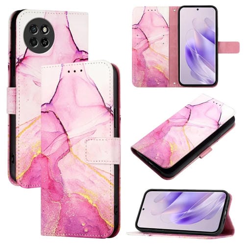 Funda de Cuero con Tapa para Itel S23 S665L Pt003 con Patrón de Mármol (Rosa, Morado y Dorado)