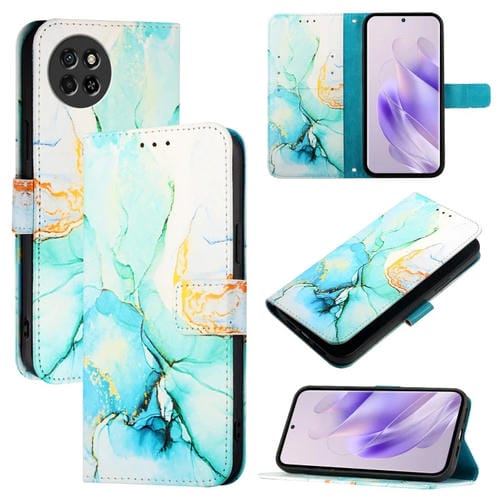 Funda para Teléfono Itel S23 S665L Pt003 Cuero con Tapa y Patrón de Mármol (Verde)