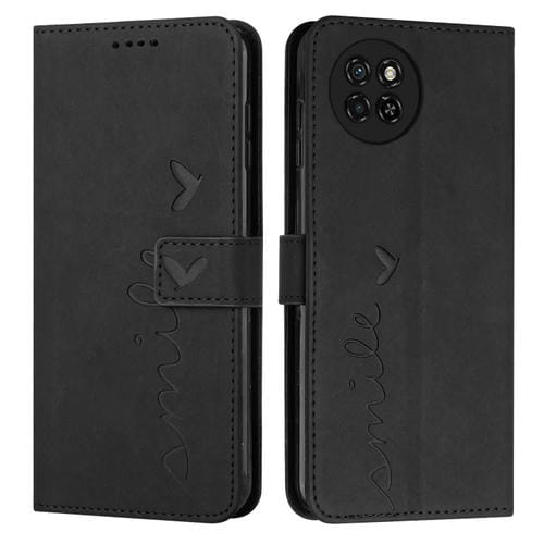 Funda de Cuero para Itel S23 Skin Feel Heart con Relieve y Cordón Largo (Negro)