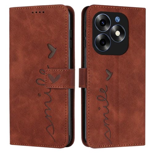 Funda para Itel S23 Skin Feel Heart de Cuero en Relieve con Cordón Largo (Marrón)