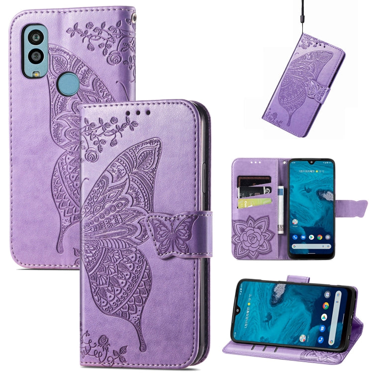 Estuche para Kyocera Android One S10 Butterfly Love Flower de Cuero en Relieve (Lavanda)