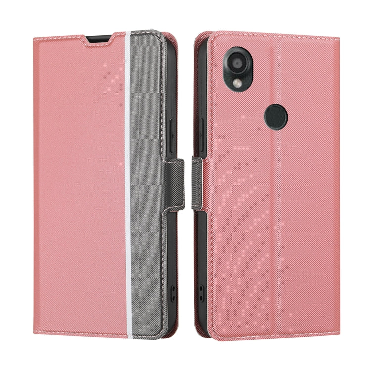 Funda de Cuero para Kyocera Digno Sx3-Kyg02 con Textura de Sarga y Botón Lateral (Rosa)