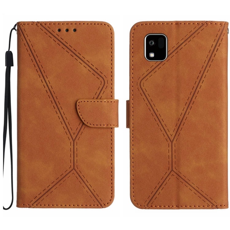 Funda de Teléfono Kyocera Kantan Sumaho3 Cuero En Relieve con Costuras (Marrón)