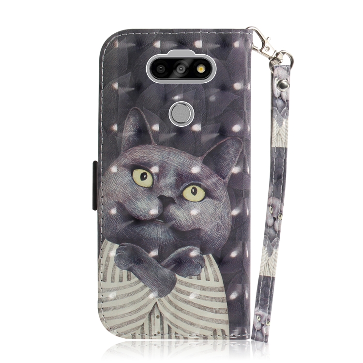 Funda de Cuero Abatible Horizontal para LG Aristo 5 con Dibujo 3D, Soporte, Ranuras y Cordón (Hug Cat)
