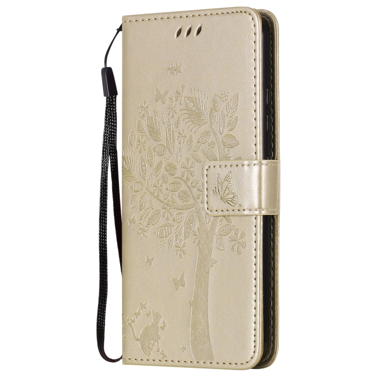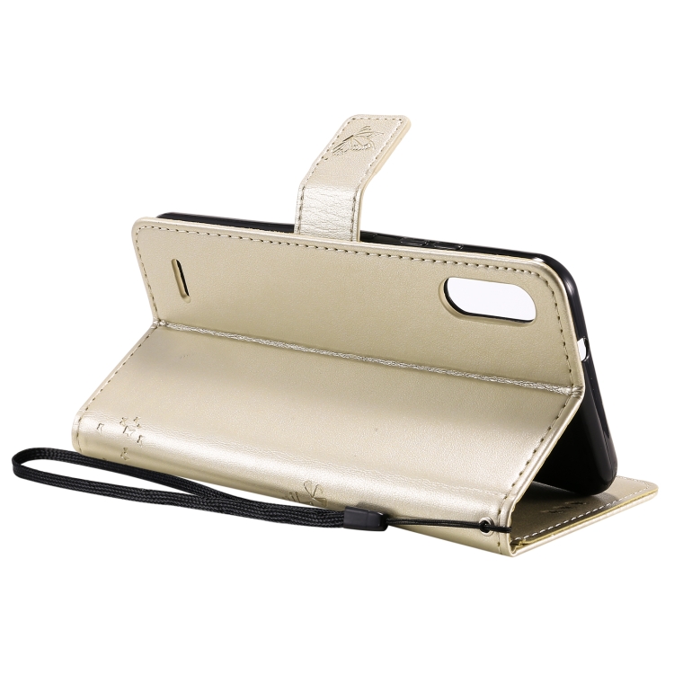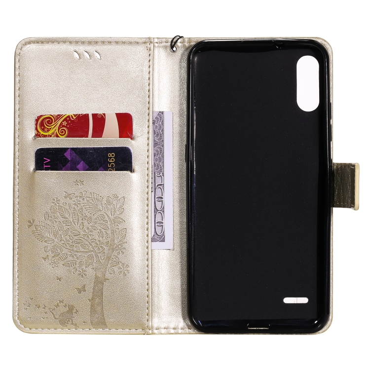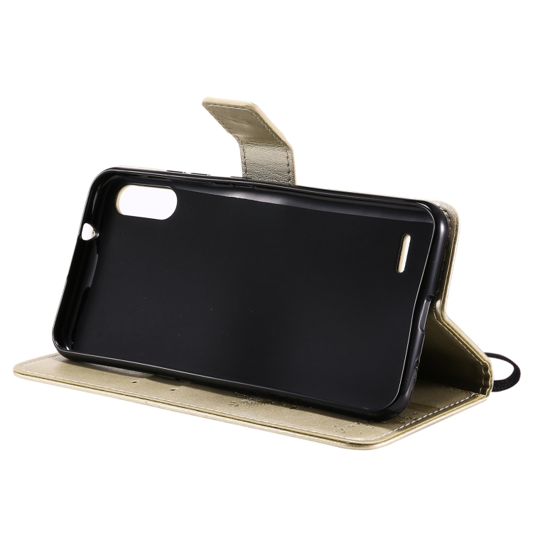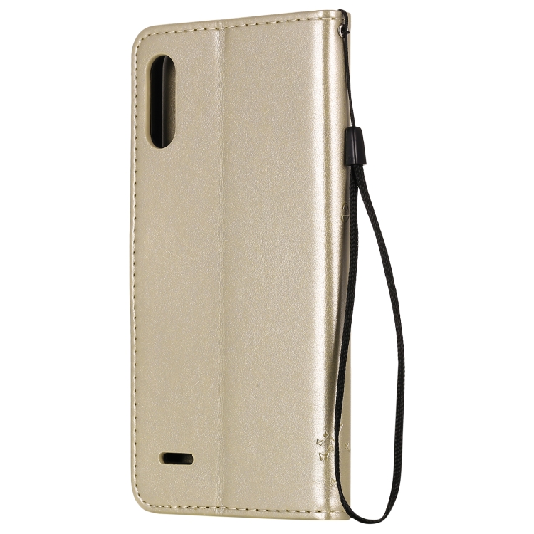 Funda Cuero PU LG K22 K22 Plus con Tapa Horizontal, Soporte, Ranuras y Cordón (Dorado)