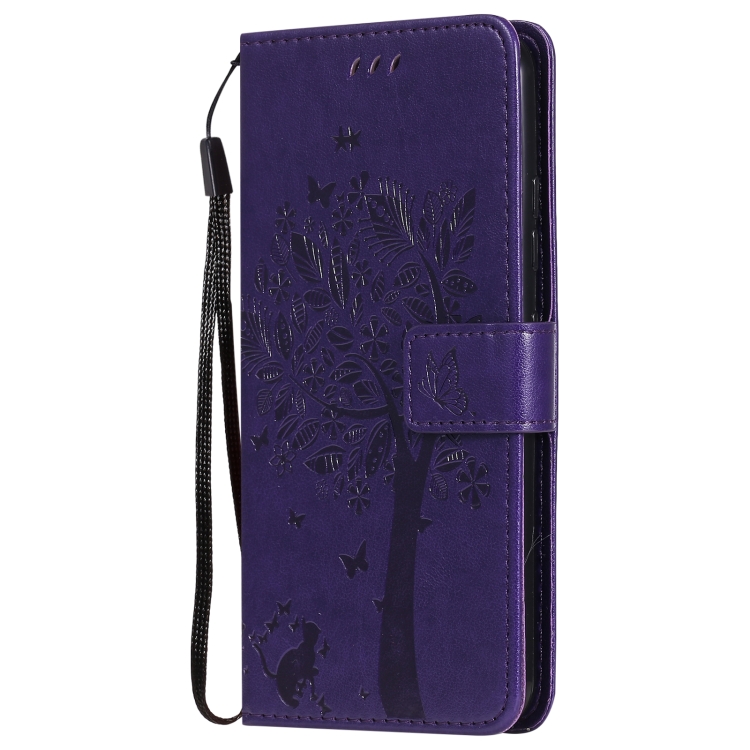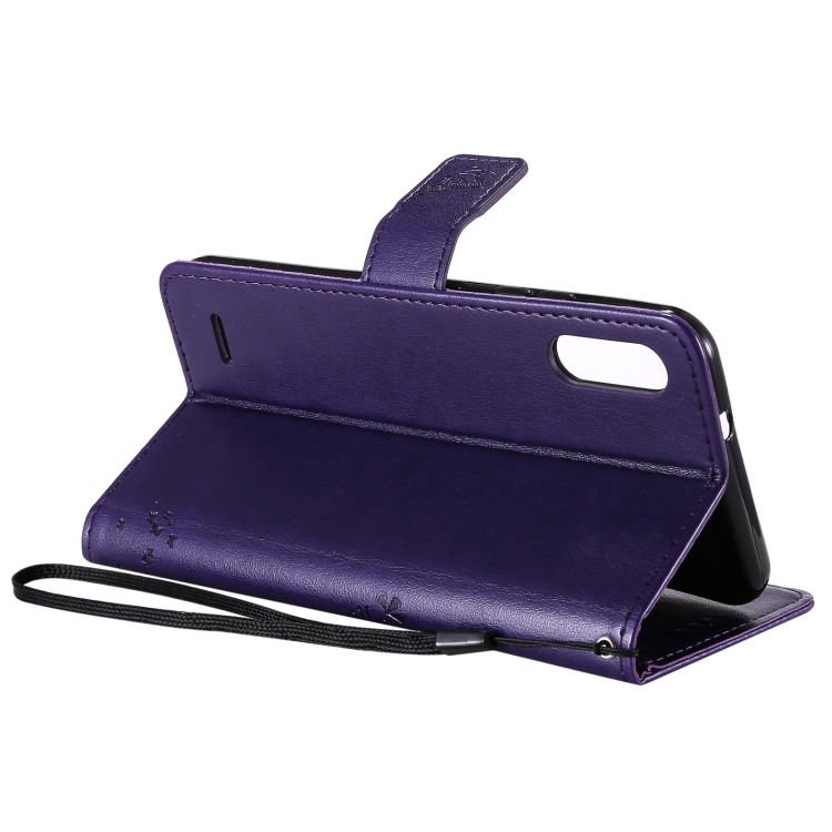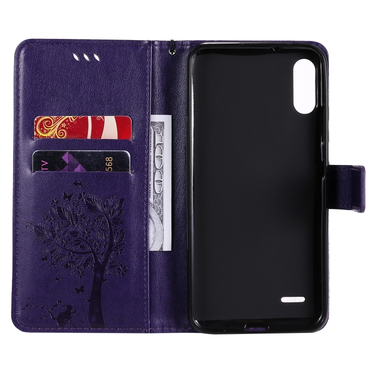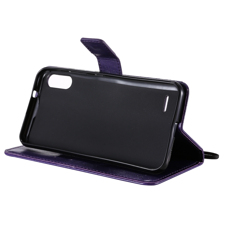 Funda Cuero PU para LG K22 y K22 Plus con Soporte, Ranuras y Cordón (Púrpura)