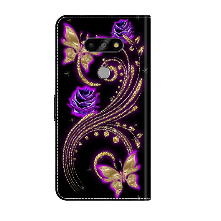 Funda Protectora de Cuero para LG K31 Crystal 3D a Prueba de Golpes (Mariposa de Flor Púrpura)