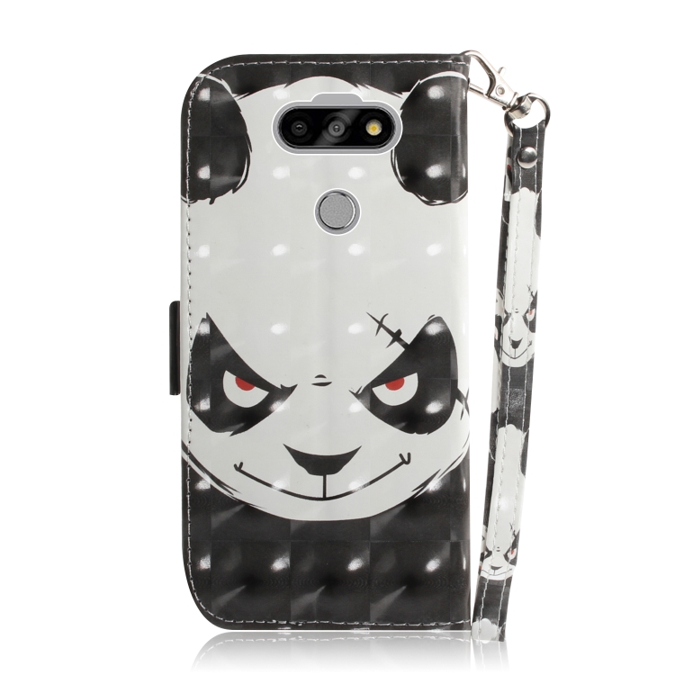 Funda de Cuero Abatible Horizontal para LG K31 con Dibujo 3D, Soporte, Ranuras para Tarjetas y Cordón (Oso Enojado)