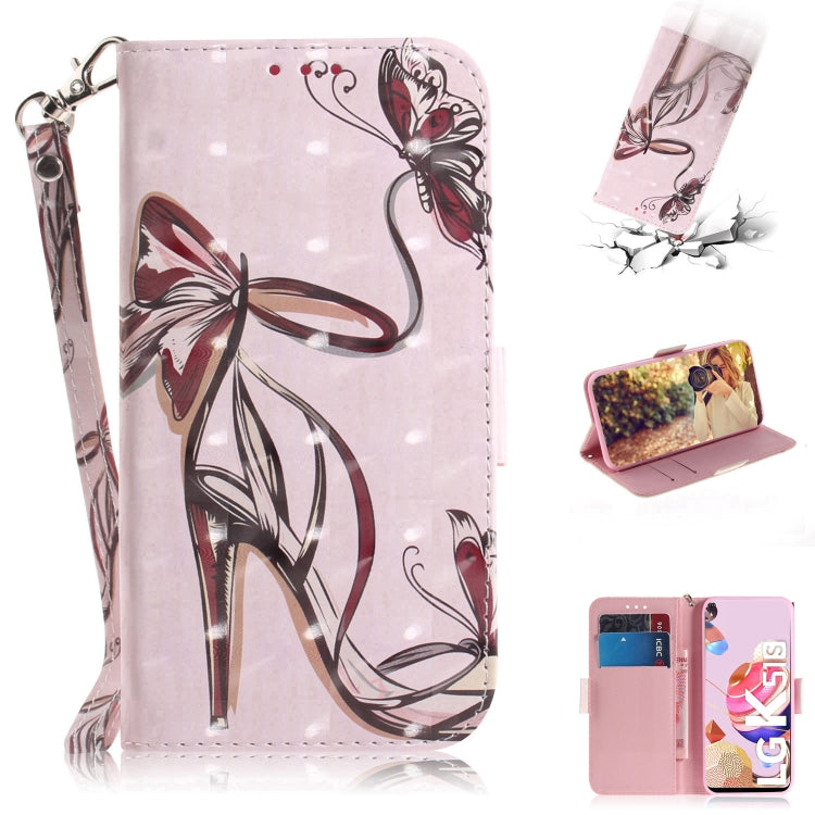 Funda de Cuero Abatible para LG K41S K51S con Dibujo 3D, Soporte, Ranuras y Cordón (Mariposa de Tacón Alto)