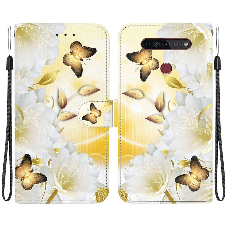 Funda para Teléfono LG K41S / K51S Cuero Dibujo Coloreado Textura Cristal (Epiphyllum Mariposa Dorada)