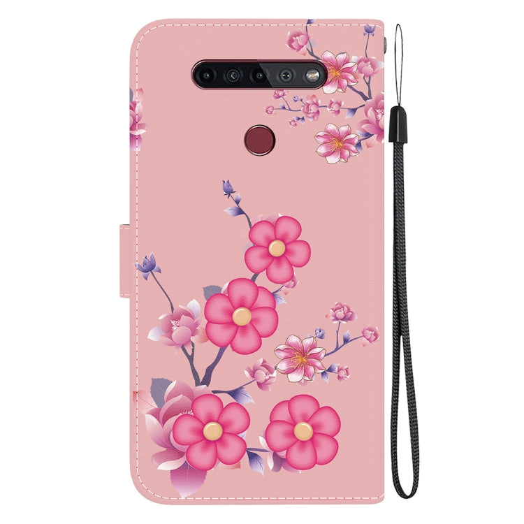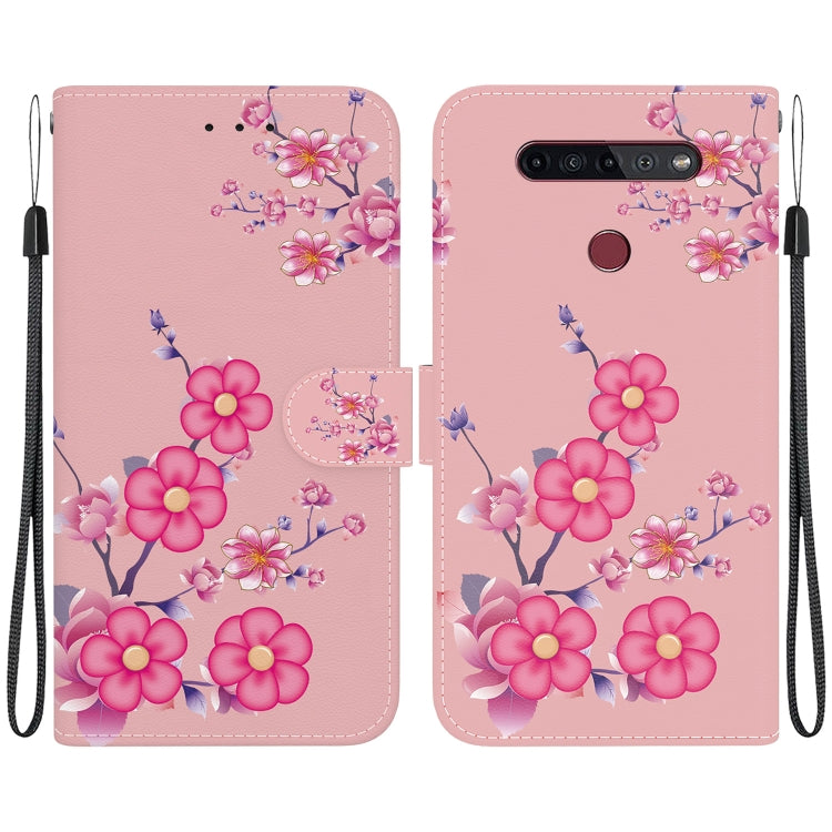 Funda para LG K41S y K51S de Cuero con Dibujo Coloreado y Textura de Cristal (Flores de Cerezo)