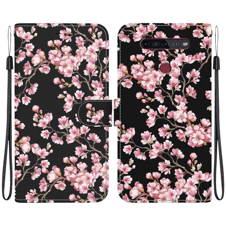 Funda para LG K41S / K51S de Cuero con Dibujo Coloreado y Textura de Cristal (Plum Bossom)