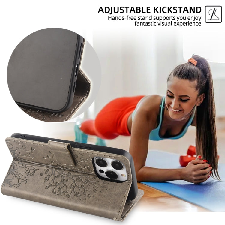 Funda de Cuero para LG K42 con Relieve de Árbol y Ciervo (Gris)