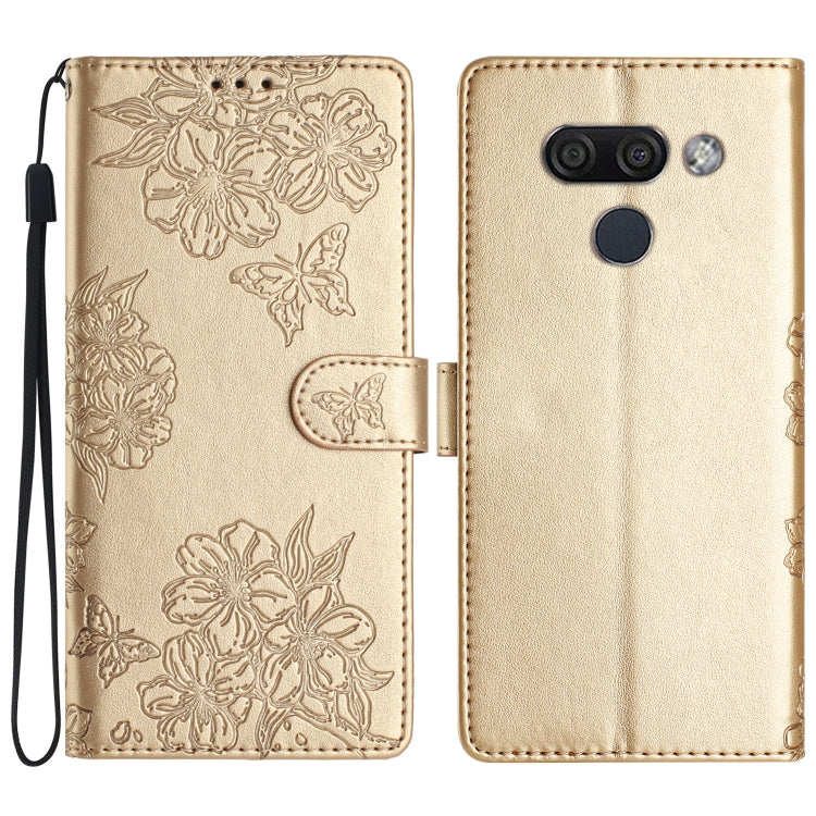Funda para LG K50 Cherry Blossom Butterfly Skin Feel de PU en Relieve (Oro)