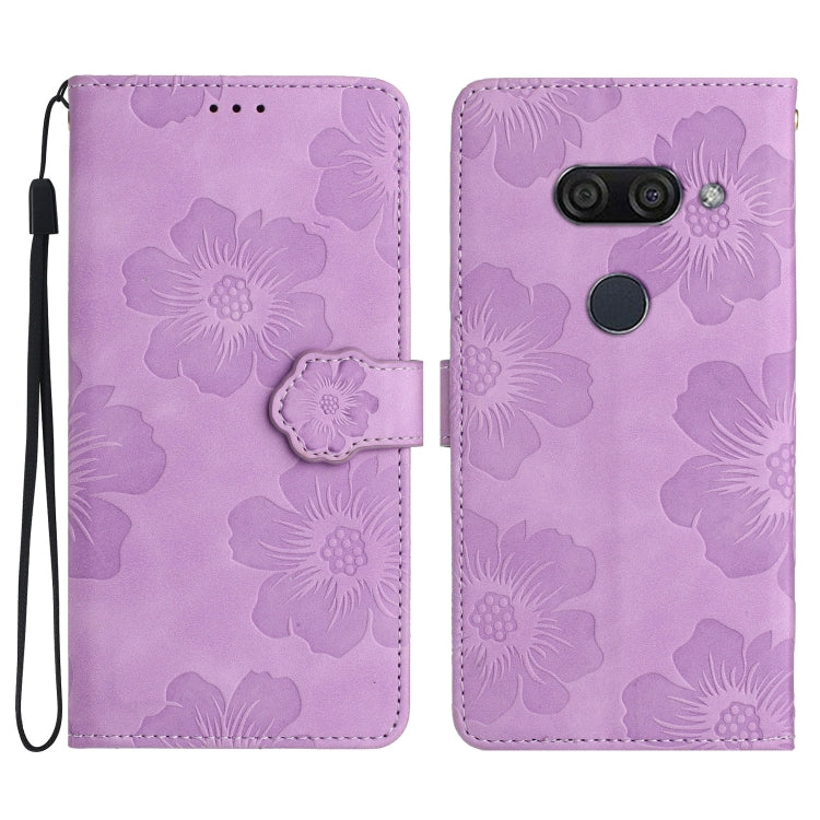 Funda de Cuero para LG K50 con Estampado de Flores en Relieve (Púrpura)