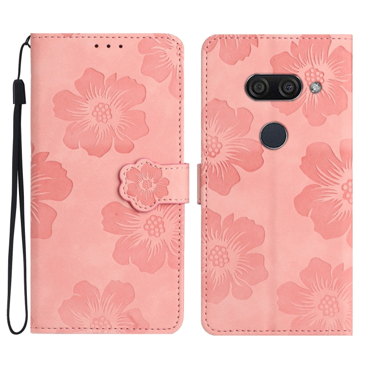 Funda de Cuero para LG K50 con Estampado de Flores en Relieve (Rosa)