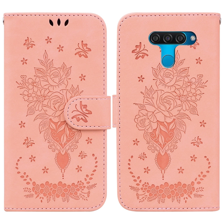 Funda de Cuero Butterfly Rose para LG K50 y Q60 (Rosa)
