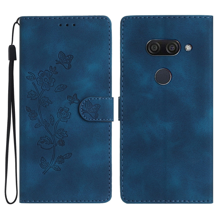 Funda de Cuero para LG K50 / Q60 con Estampado de Mariposa y Flores (Azul)