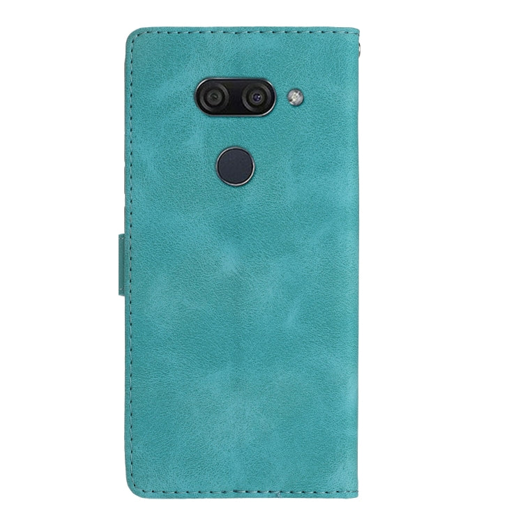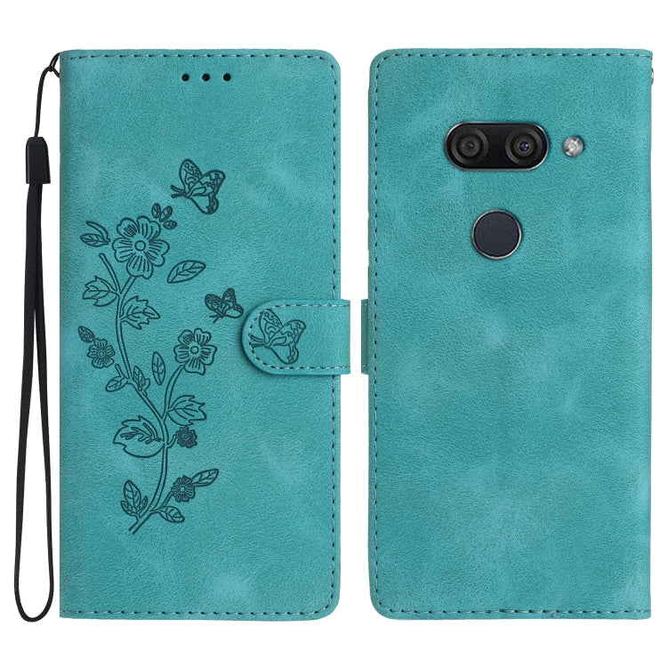 Funda de Cuero para LG K50 / Q60 con Estampado de Mariposas y Flores (Azul Cielo)