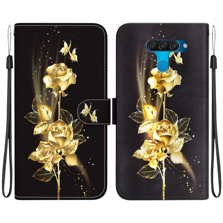 Funda para LG K50 / Q60 de Cuero con Dibujo Coloreado y Textura de Cristal (Mariposa Dorada Rosa)