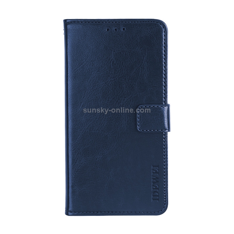 Funda de Cuero Idewei Crazy Horse para LG K51S con Tapa Horizontal, Soporte, Ranuras para Tarjetas y Billetera (Azul Oscuro)